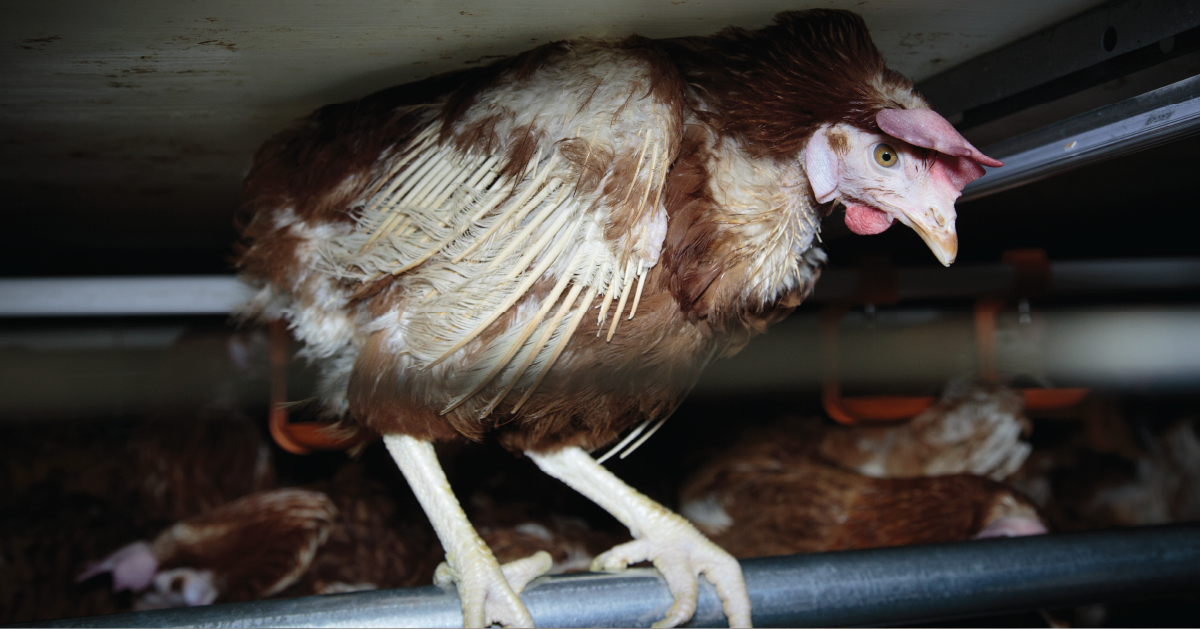 • Widespread injury and illness: Brittle bones, fractures, foot conditions, metabolic disorders, cage layer fatigue, feather loss, and injuries from aggressive cage mates were just some of the health issues these birds endure.
